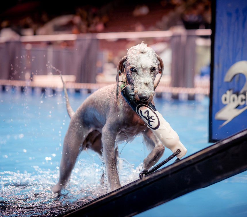 Have you watched your Bedlington fearlessly dive into a lake or pool? If so, your dog might love participating in one of the fastest growing sports, Diving Dogs!